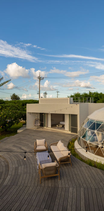 寝室棟、グランピングドーム棟、キッチン棟の3棟あり、